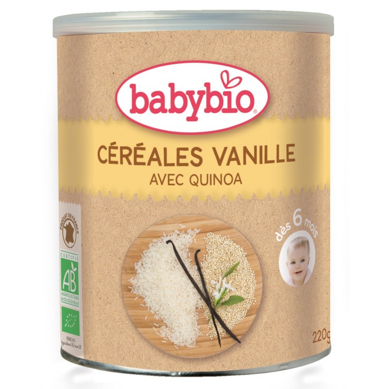 PROPRIETES Céréales infantiles biologiques à la vanille et et au quinoa dès 6 mois. Fabriquéen France. Aliment adapté à l’enfant – Peut contenir des traces éventuelles de lait, gluten et soja